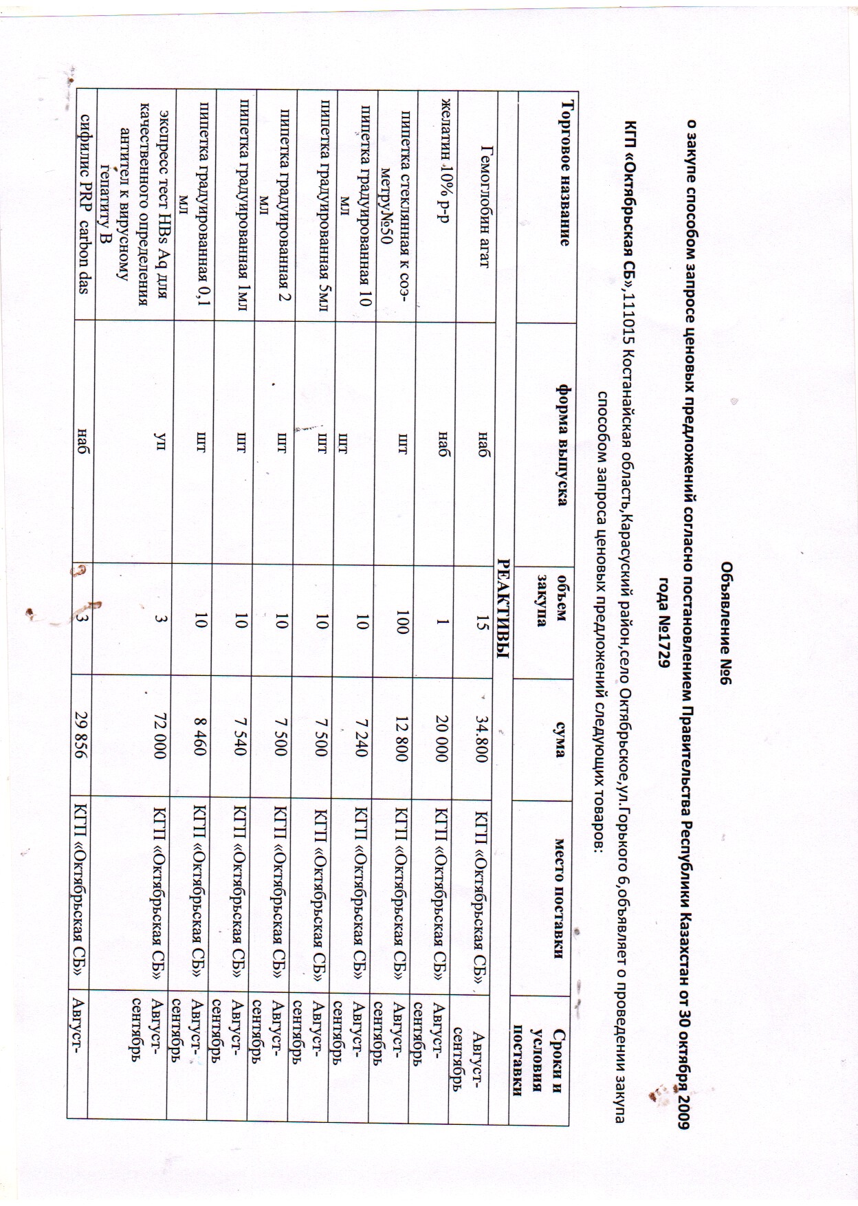 «Октябрь селолық ауруханасы» КМК Қостанай облысы әкімдігі Денсаулық сақтау басқармасының