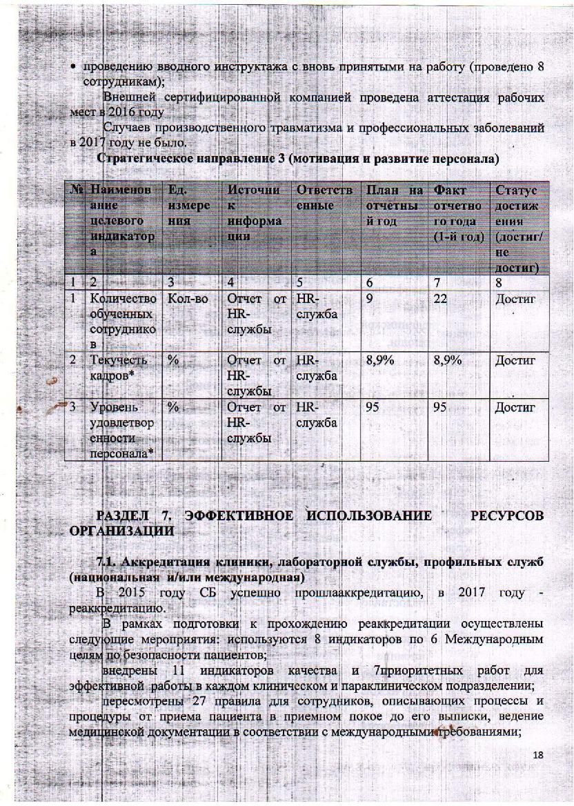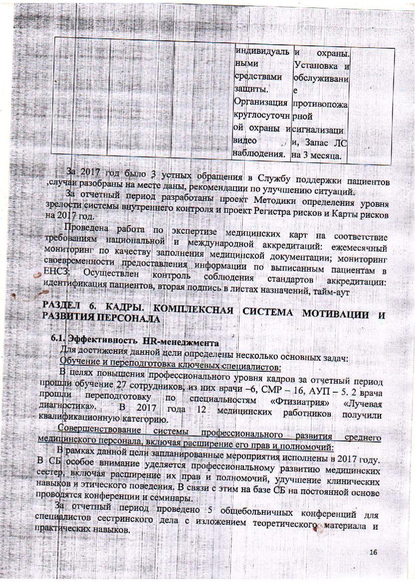 Қызметі туралы жылдық есеп КМК "Октябрь СБ" 2017 жыл